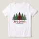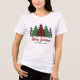 Esta personalizado camiseta de trinquete de las mujeres de vacaciones rústicas presenta la moda de los árboles rojos y verdes árboles de Navidad sobre tu mensaje Feliz Navidad. Un bonito look personalizado y tradicional que está de nuevo en el estilo, este salón de fiestas es perfecto para una reunión familiar. Diseño clásico y nostálgico.