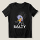 Food-inspired apparel design. Sprinkle Salt: The word 'Salty' is artistically rendered in a sparkling salt crystal style, making it a striking visual element.