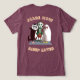 El color es muy bonito al natural, como la foto. El tejido es suave y de buena calidad. Sin defectos en el tintado, ni hilos sueltos o descosidos. Bien la impresión. Los bordes de las letras y el dibujo son nítidos, y el color contrasta muy bien con el de la camiseta.