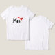 Muestra tu estado de "señora" con estilo con esta adorable camiseta con un audaz guión negro y dos corazones rojos. Ya sea que se trate de una futura novia, recién casada o orgullosamente llevada, este té agrega encanto a cualquier conjunto. Ideal para el desgaste casual, viajes de luna de miel, duchas de novias, o como un regalo reflexivo para su Sra. Made favorita con tela suave y respirable para el confort y la confianza durante todo el día.