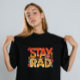 Aquí hay otro diseño de camisetas inspirado en los años 70 con tipografía audaz y groovi que dice "Stay Rad" con patrones florales vibrantes y retro. 🌼 ✨ 🌸