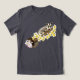 Un lindo planeador de azúcar sentado en una rama de árbol con pequeñas flores rosadas, blancas y amarillas por todos lados. El azúcares y las flores se dibujan en tatuajes en un fondo negro