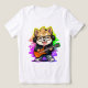 El color es muy bonito al natural, como la foto. El tejido es suave y de buena calidad. Sin defectos en el tintado, ni hilos sueltos o descosidos. Bien la impresión. Los bordes de las letras y el dibujo son nítidos, y el color contrasta muy bien con el de la camiseta.