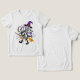 su fascinante obra de arte sobre la temática de Halloween incluye la lúgubre frase "Te pongo un hechizo" en una tipografía caprichosa y rizada que añade un toque mágico. El diseño cobra vida con vibrantes ilustraciones de elementos brujos clásicos, entre ellos un gorra de bruja púrpura puntiaguda, un palo de escoba y medias rayadas emparejadas con zapatos de pies curvados. Alrededor del texto hay detalles encantadores como una botella de poción, murciélagos y estrellas brillantes, todo representado en una paleta de colores de violetas, naranjas y negros profundos, que capturan a la perfección el espíritu espeluznante y divertido de Halloween. Este diseño es ideal para la decoración festiva, la ropa o las tarjetas de vacaciones, añadiendo un toque de encanto a cualquier celebración de Halloween.