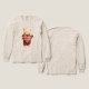 El color es muy bonito al natural, como la foto. El tejido es suave y de buena calidad. Sin defectos en el tintado, ni hilos sueltos o descosidos. Bien la impresión. Los bordes de las letras y el dibujo son nítidos, y el color contrasta muy bien con el de la camiseta.