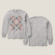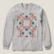 Se presenta un patrón simétrico y cruzado de pequeñas formas y líneas en naranja de terracota y azul verde azulado, creando un aspecto algo parecido a una corona. Fotografiado aquí en una camiseta con mezcla trinitálica de manga larga (impresión intensa) "gris atlético", con otros colores y estilos disponibles. Inspirado por el estilo de arte nativo americano/suroeste, el diseño proyecta una calidad artística cálida para una adición versátil y moderna a tu ropa informal y diaria (ya sea en la escuela, con amigos, y para deportes, y recreación).