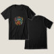 El diseño de la camiseta incluye la frase "Tierra de la Unidad" en letras vibrantes y multicolores. Alrededor del texto hay patrones abstractos que giran y simbolizan la unidad y la diversidad. El diseño transmite una sensación de interconexión y armonía, celebrando la riqueza de las diferentes culturas y la importancia de unirse como comunidad.