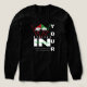 El color es muy bonito al natural, como la foto. El tejido es suave y de buena calidad. Sin defectos en el tintado, ni hilos sueltos o descosidos. Bien la impresión. Los bordes de las letras y el dibujo son nítidos, y el color contrasta muy bien con el de la camiseta.