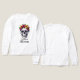 Acepte la elegancia tranquila de nuestro diseño "Tranquil Bloom". Esta cautivadora pieza exhibe un cráneo, reimaginado en un estado de serenidad contemplativa, coronado con una impresionante variedad de flores rosadas, amarillas y naranjas entre verdes hojas. Se trata de una potente declaración artística sobre la belleza y la vida, incluso en los lugares más inesperados, que ofrece una mezcla única de reflexión y encanto radiante. Usa una pieza que hable con el alma.