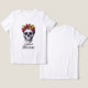 Acepte la elegancia tranquila de nuestro diseño "Tranquil Bloom". Esta cautivadora pieza exhibe un cráneo, reimaginado en un estado de serenidad contemplativa, coronado con una impresionante variedad de flores rosadas, amarillas y naranjas entre verdes hojas. Se trata de una potente declaración artística sobre la belleza y la vida, incluso en los lugares más inesperados, que ofrece una mezcla única de reflexión y encanto radiante. Usa una pieza que hable con el alma.