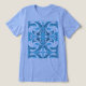 Se trata de un motivo de arte abstracto geométrico, contemporáneo, compuesto por un diseño ornamental, giratorio, simétrico y de mosaico de formas y líneas en tonos agua y turquesa, inspirado en el diseño mediterráneo. Imagen aquí en una camiseta "azul" Bella+Canvas Tri-Blend en impresión clásica, con otros colores y estilos disponibles. El diseño proyecta una calidad artística suave, algo clásica, para una adición versátil y elegante a tu ropa informal y diaria (ya sea en casa, socializando con amigos, jugando deportes o corriendo por la ciudad). El diseño de la camisa como "arte para llevar" también expresa un sentido de tu estilo individualizado, contribuyendo a la sensación de estar "juntos" y ser creativo en tus elecciones de armario personal.