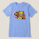 El color es muy bonito al natural, como la foto. El tejido es suave y de buena calidad. Sin defectos en el tintado, ni hilos sueltos o descosidos. Bien la impresión. Los bordes de las letras y el dibujo son nítidos, y el color contrasta muy bien con el de la camiseta.