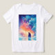 Un pingüino se alza sobre una superficie helada reflexiva, rodeado por un paisaje de ensueño de árboles coloridos y un cielo estrellado. La escena evoca sentimientos de tranquilidad y encanto, mezclando elementos de naturaleza y fantasía.