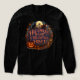 Una Camiseta Tri-Blend de Halloween Deliciosa y Aterradora. © Camisetas y Sudaderas en Zazzle. Esta camiseta de Halloween tiene un diseño que incluye una bruja, una calabaza, un gato negro y las palabras "Noche de Brujas Deliciosa y Aterradora" en ella.