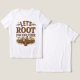 Celebren la amabilidad y la comunidad con este diseño rústico de camisetas con el texto "DEJEMOS RAÍCES UNOS PARA OTROS" en un encantador tipo de letra dibujado a mano. Las zanahorias, cebollas y patatas ilustradas aportan un toque divertido, colocado sobre un fondo de madera beige. ¡Ideal para difundir positividad y vibraciones saludables al estilo de todos los días!