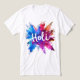 Celebrate the Festival of Colors with this stunning, high-energy design. Featuring a bold "Holi" script set against an explosive burst of electric blue, magenta, and fiery orange powders, this tee captures the spirit of joy and renewal. Perfect for Holi parties, community events, or adding a pop of artistic flair to your everyday wardrobe.