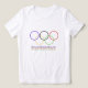 Elevate your wardrobe with this striking interlocking rings illustration, crafted with a contemporary twist. Each ring is designed in a different colour, blue, yellow, black, green, and red, symbolising motion, strength, and harmony. The wavy coloured lines beneath add a fluid, energetic feel that makes the design stand out on and off the field. Printed on high-quality apparel through Zazzle, this shirt is ideal for workouts, outdoor activities, casual outfits, or gifting to someone who loves modern sports-style art. Add a pop of colour and personality to your sportswear collection with this original design.