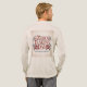 El color es muy bonito al natural, como la foto. El tejido es suave y de buena calidad. Sin defectos en el tintado, ni hilos sueltos o descosidos. Bien la impresión. Los bordes de las letras y el dibujo son nítidos, y el color contrasta muy bien con el de la camiseta.