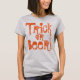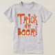 ¡Truco o cerveza! Parodia/parodia del popular dicho/eslogan "Trick or Treat" de Halloween. Graciosa Camisa de Disfraces para el Día de Halloween / Fiesta. Letra naranja / fuente / texto con calaveras de una manera de dibujo fresco y de cadera. Tipografía de Halloween.