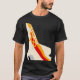 El color es muy bonito al natural, como la foto. El tejido es suave y de buena calidad. Sin defectos en el tintado, ni hilos sueltos o descosidos. Bien la impresión. Los bordes de las letras y el dibujo son nítidos, y el color contrasta muy bien con el de la camiseta.