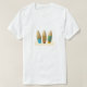 Tres tablas de madera retro colocadas juntas en la arena. Los diseños de la tabla de surf incluyen olas azules, delfines y palmeras. Este diseño es fresco, moderno y perfecto para los amantes de la playa, el verano y el estilo de vida de surf.