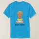 El color es muy bonito al natural, como la foto. El tejido es suave y de buena calidad. Sin defectos en el tintado, ni hilos sueltos o descosidos. Bien la impresión. Los bordes de las letras y el dibujo son nítidos, y el color contrasta muy bien con el de la camiseta.