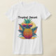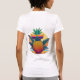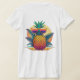 Este vibrante diseño de camisetas presenta una piña estilizada que lleva un par de gafas de sol contra el fondo de una puesta de sol tropical. La piña se detalla con un patrón texturizado, y las gafas de sol reflejan los colores vibrantes de la puesta de sol. Los frondos de las palmas enmarcan los lados inferiores de la imagen, mejorando su tema tropical.