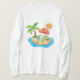 Stay cozy while dreaming of an exotic paradise in this women’s long-sleeve T-shirt. The design features a cute sea turtle and a palm tree in a sunny cartoon beach picnic setting. Perfect for a breezy summer vacation evening or a casual holiday getaway, this top brings the ocean breeze to your wardrobe. The vibrant tropical island graphic ensures you carry the warmth of the sand shore with you throughout the year.