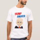 Caricatura del presidente Donald Trump con texto de TRUMP AMERICA en rojo y azul americano.
