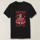 Un diseño vibrante de camisetas con Donald Trump vestido con un traje rojo cubierto de patrones cardíacos, que le dan forma al corazón con las manos. El atrevido texto "TRUMP ES MY VALENTINE" destaca en un fondo negro con alegres motivos cardíacos, ideal para un regalo único por el Día de San Valentín.