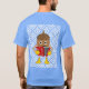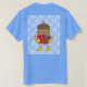 El color es muy bonito al natural, como la foto. El tejido es suave y de buena calidad. Sin defectos en el tintado, ni hilos sueltos o descosidos. Bien la impresión. Los bordes de las letras y el dibujo son nítidos, y el color contrasta muy bien con el de la camiseta.
