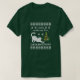 Dark green t-shirt featuring a digitally illustrated pixel and knitted-style design of a sleepy cat stretching beside a Christmas tree. The festive print in white, red, and green brings cozy holiday vibes — perfect for cat lovers who only wake up for tuna and Christmas! Join the ugly Christmas trend with this playful twist on classic holiday tees.