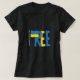 El diseño de Free Ukraine muestra la palabra "Libre" con los colores de la bandera ucraniana y la "F" siendo la bandera de Ucrania en un asta. Apoyar la autodeterminación y la libertad de Ucrania.