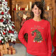 Este gato gracioso colgado en un árbol de Navidad podría enviar un mensaje a las mujeres cansadas, a las administradoras de Las Fiestas, de que necesitan colgarse ahí. No dura para siempre aunque parezca que sí. Una brillante camiseta roja de vacaciones puede ser sólo la sonrisa que necesita. La tipografía "Cuelga ahí", personalizada con un nombre y el texto de Navidad se complementa con el divertido gato de esmoquin que cuelga del ilustracion de los árboles de Navidad. Es un gran regalo de Navidades tempranos para todas las mujeres en tu vida que hacen de la festividad la magia.