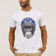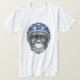 Características del este diseño un retrato de un chimpancé en un casco patriótico del motorcyle.