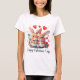Un par de divertidos conejos acuarelas rodeados de flores y corazones. Un maravilloso regalo El día de San Valentín para una pareja enamorada. La inscripción en el producto: Feliz Día de San Valentín