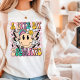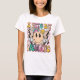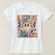 La camiseta de mujeres, un poco dramática y divertida Groovy Saying Typography, muestra el texto "Un poco dramático" en la tipografía moderna sobre un fondo de tablero de ajedrez rosa con flores gruesas, pernos iluminadores y una cara sonriente. Diseñado por Evco Studio www.zazzle.com/store/evcostudio