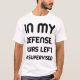 Incluye una graciosa excusa de cita que dice: En mi defensa, me quedé sin supervisión. A menudo se utiliza de manera desenfadada para reconocer un fallo de juicio o un resultado inesperado, y a la vez se agrega un giro humorístico culpando a la falta de supervisión de la situación.