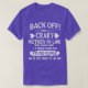 El color es muy bonito al natural, como la foto. El tejido es suave y de buena calidad. Sin defectos en el tintado, ni hilos sueltos o descosidos. Bien la impresión. Los bordes de las letras y el dibujo son nítidos, y el color contrasta muy bien con el de la camiseta.