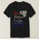 El color es muy bonito al natural, como la foto. El tejido es suave y de buena calidad. Sin defectos en el tintado, ni hilos sueltos o descosidos. Bien la impresión. Los bordes de las letras y el dibujo son nítidos, y el color contrasta muy bien con el de la camiseta.