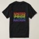 El atrevido texto multicolor "Orgullo Unido, nación fuerte" ocupa el centro del escenario en esta camiseta. Cada palabra pasa suavemente al siguiente con un gradiente multicolor vibrante, creando un sentido de unidad y movimiento.