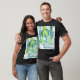 El color es muy bonito al natural, como la foto. El tejido es suave y de buena calidad. Sin defectos en el tintado, ni hilos sueltos o descosidos. Bien la impresión. Los bordes de las letras y el dibujo son nítidos, y el color contrasta muy bien con el de la camiseta.