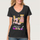 Camiseta con cuello en V de mujer, Negro, XL de adulto