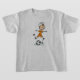 Una figura del palillo del chica en un uniforme anaranjado del fútbol golpea el balón de fútbol con el pie en las camisetas adaptables del fútbol de los chicas, las tarjetas, las tazas, las bolsas de asas, y otros artículos de la ropa y del regalo del fútbol.