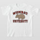Universidad de Wombat: La escuela de escolares y de campeones. Escudo de la universidad de Wombat con las letras negras y rojas.