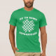 Up to Some Shenanigans St. Patrick's Day Shamrock T-Shirt. Get ready for some mischievous fun with this "Up To Some Shenanigans" green St. Patrick's Day t-shirt. Featuring a unique checkered shamrock design, this funny shirt is perfect for anyone looking to embrace the festive spirit of the holiday with a playful twist. The bold white text and distinctive shamrock graphic are sure to catch the eye, making it an ideal choice for parades, parties, bar crawls or just celebrating your Irish heritage. Show off your sense of humor and holiday cheer with this eye-catching humorous tee.