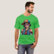 El color es muy bonito al natural, como la foto. El tejido es suave y de buena calidad. Sin defectos en el tintado, ni hilos sueltos o descosidos. Bien la impresión. Los bordes de las letras y el dibujo son nítidos, y el color contrasta muy bien con el de la camiseta.