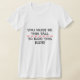 Camiseta blanca con las letras negras con sombrear gris. El subtítulo dice: ¡USTED DEBE SER ÉSTE ALTO MONTAR ESTE PASEO! Hay un rojo doted línea a través del diseño.