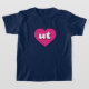 Esta camiseta tiene un vibrante corazón rosado caliente que contiene las letras fundas más bajas redondeadas, en negrita, blancas, pero una abreviatura divertida para el estado de Utah, el estado de la colmena.