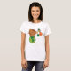 Una vaca irlandesa divertida parada en un planeta verde con un trébol en la boca. Este diseño se ve realmente efectivo en esta camiseta femenina